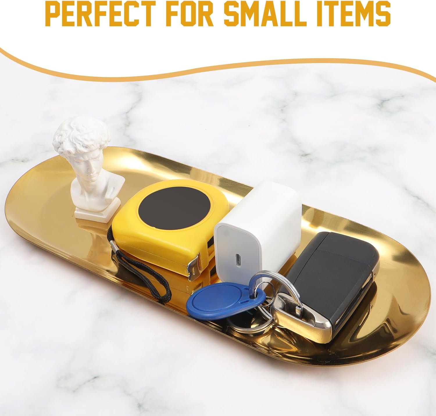 8 reviews for 2PACK Gold Decorative Tray,Oval Stainless Steel Trays, Decorative Tray for Jewelry Dish Cosmetics Organizer Bathroom Clutter Serving Platter