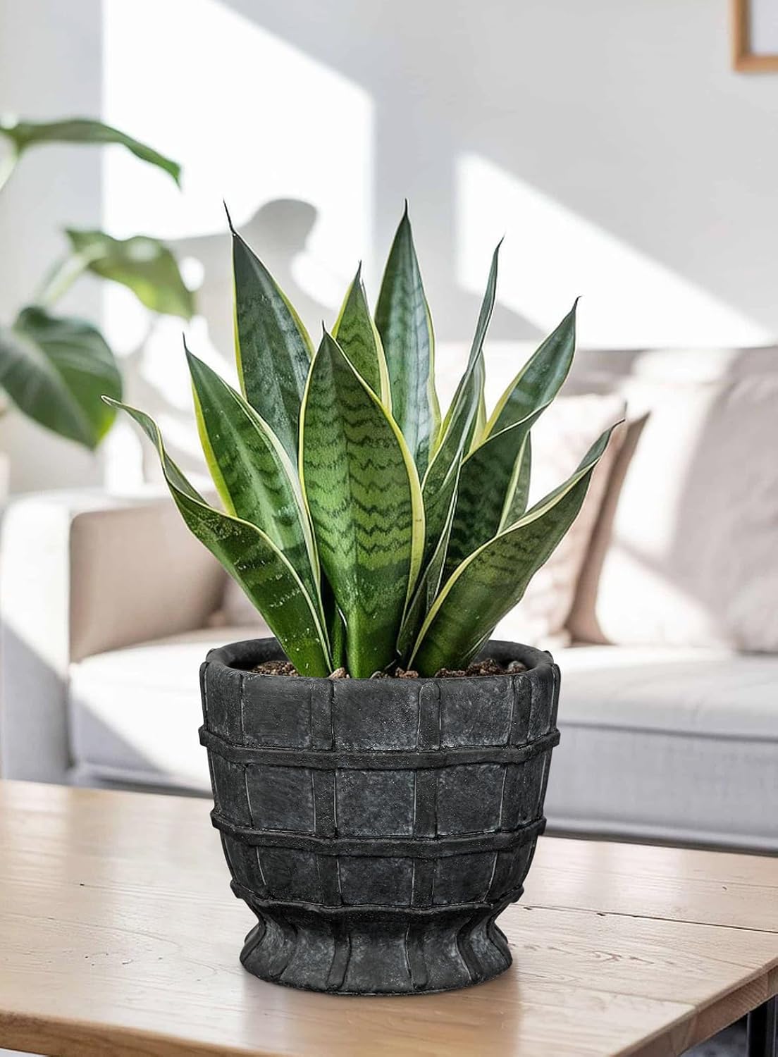 Inspired by vintage whiskey barrels, yet sculpted with a modern matte finish, these flower pots outdoor blend perfectly with farmhouse, rustic, boho, and contemporary home décor or room decor. A true standout among ceramic flower pots for indoor plants.