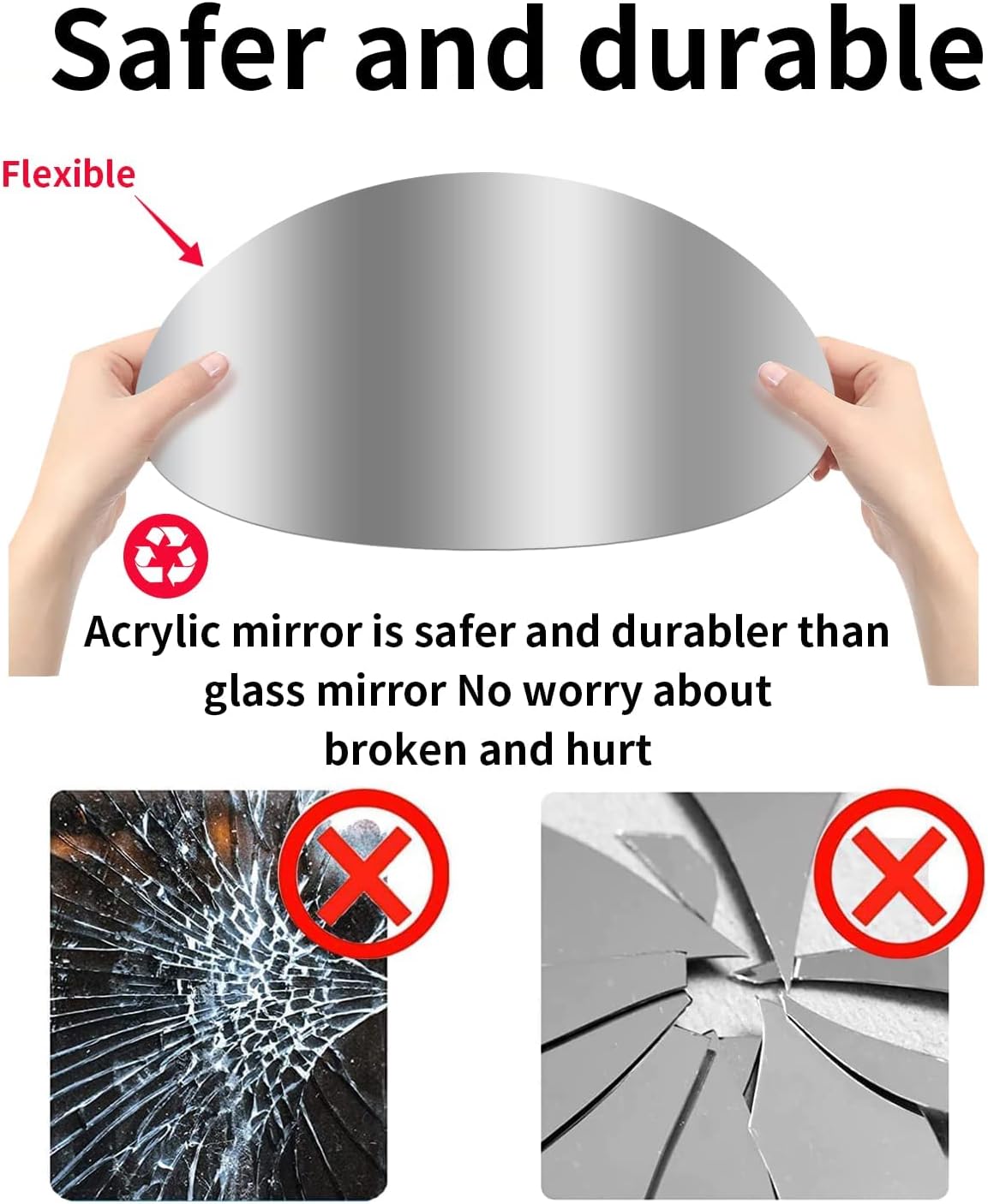 Special Made: Plastic mirrors disc are 2.5 mm in thickness, sturdy and stable, more clear and realistic, and be undistorted in long distance. great for small and big room, also be used as an decoration in room, make your home look different and attractive.