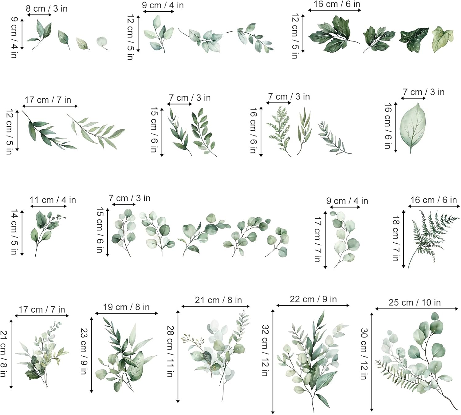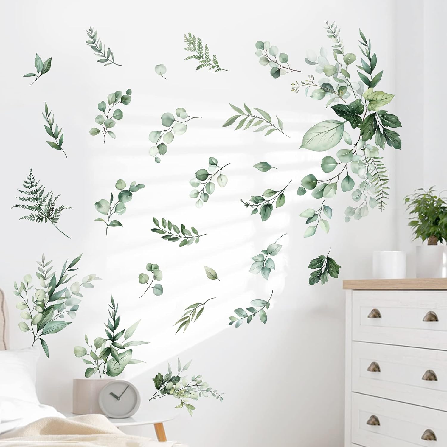 13 reviews for decalmile Botanical Green Leaves Wall Stickers Eucalyptus Leaf Plants Wall Art Decals Bedroom Living Room TV Background Wall Decor