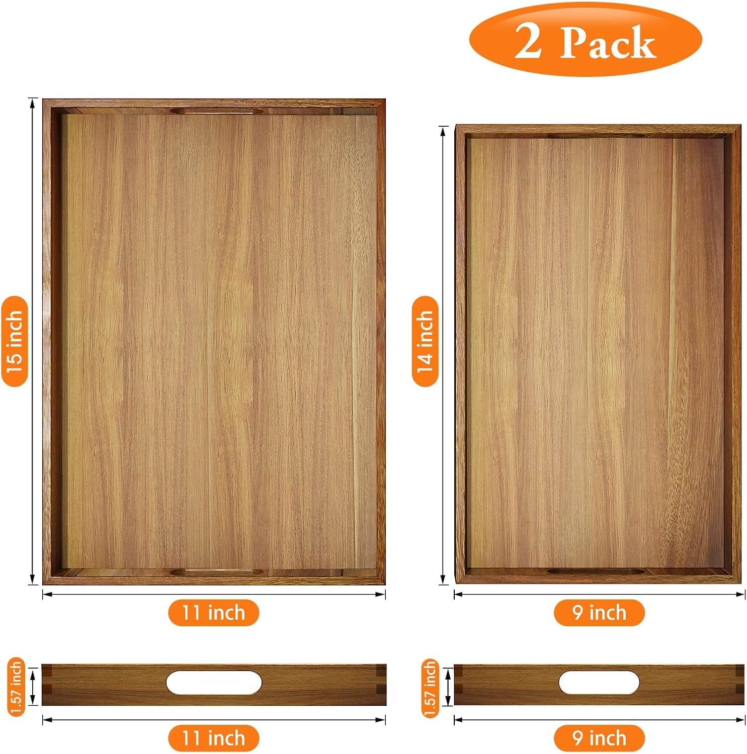 8 reviews for EdenDwell Serving Trays – 2 Pack, Acacia Wood Serving Platters with Ergonomic Handles, Versatile Rustic Decorative Trays for Breakfast, Brunch, Dinner, Coffee Table, Party, Kitchen-M