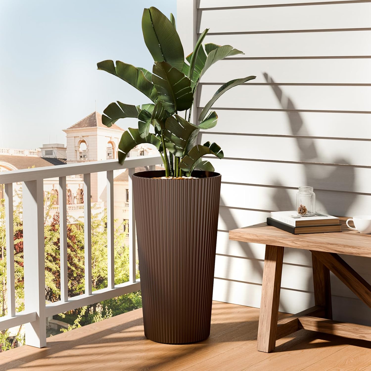 8 reviews for FONTOI 23.6″ Tall Planter for Outdoor Plants Set of 2 Large Outdoor Plastic Striped Flower Pots, Front Porch Furniture, Garden Pots, Decorative Planters for Indoor/Outdoor, Patio, Balcony, Brown