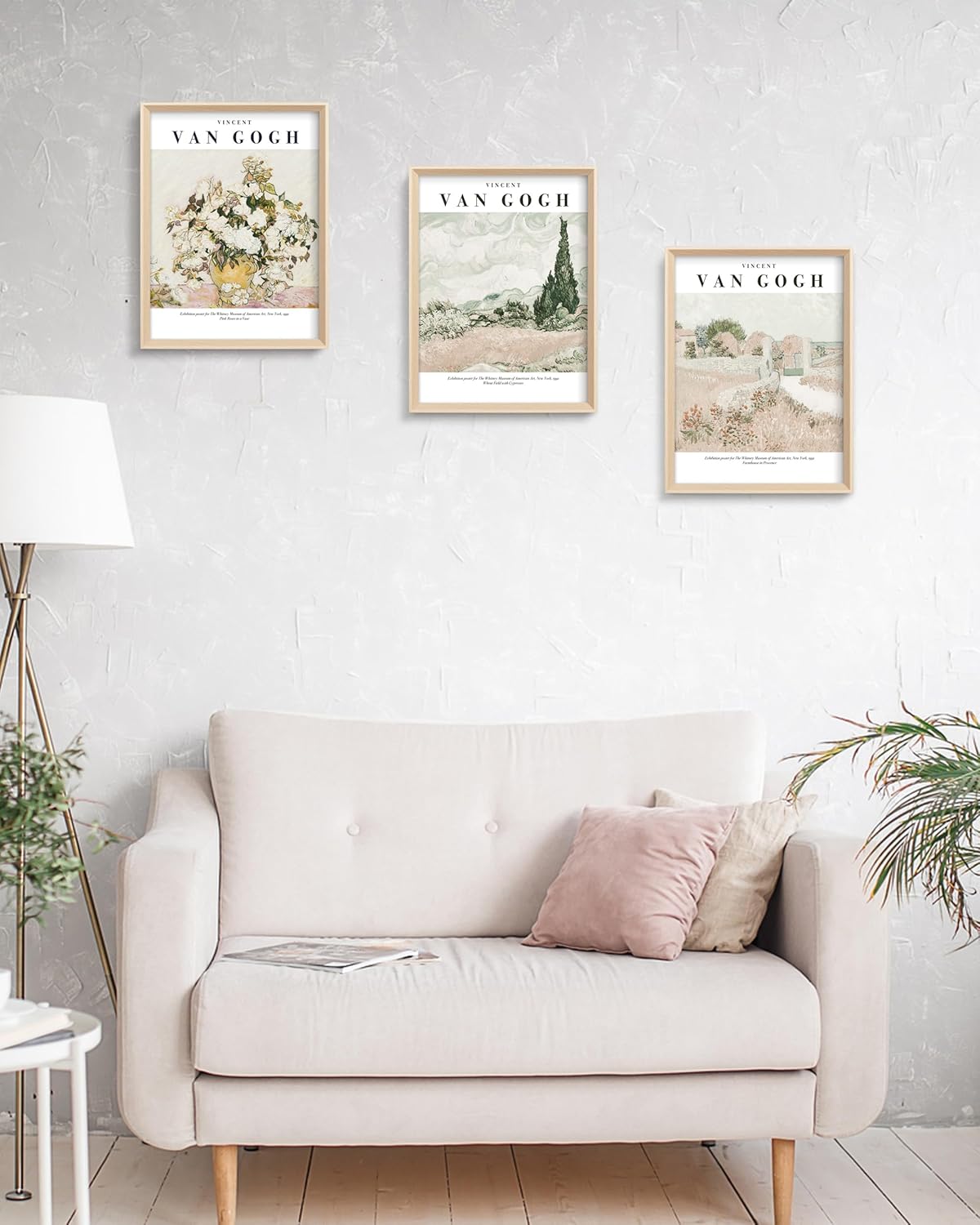 Neutral Van Gogh Artwork: This framed wall art set features three of Vincent van Gogh’s masterpieces with delicate floral and countryside themes in soft beige and cream tones, bringing calm, minimalist elegance to your home. Ideal for modern, minimalist, Scandinavian, or boho interiors