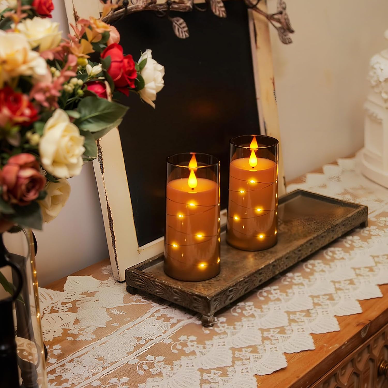 Homemory Acrylic Flameless Candles with Embedded Star String Lights