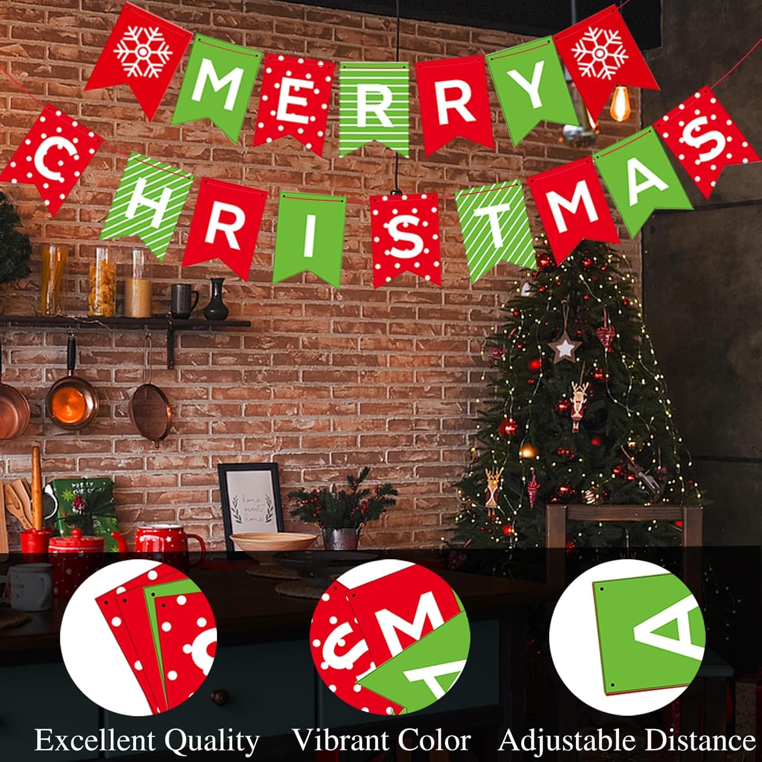 8 reviews for Merry Christmas Banner – Premium Heavyweight Paper Holiday Sign with String & Threading Needle for Indoor Fireplace, Wall, Windows | Traditional Festive Decor (Merry & Bright) (double-sided)