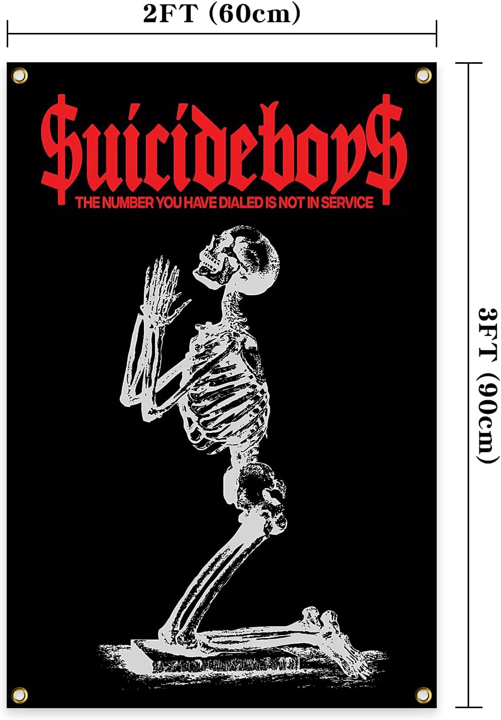 owpIa Horror Skull Tapestry Suicide Music Boys Flag 2x3ft for Room Teen Girls Indoor Outdoor Bedroom and College Dorm With 4 Brass Grommets